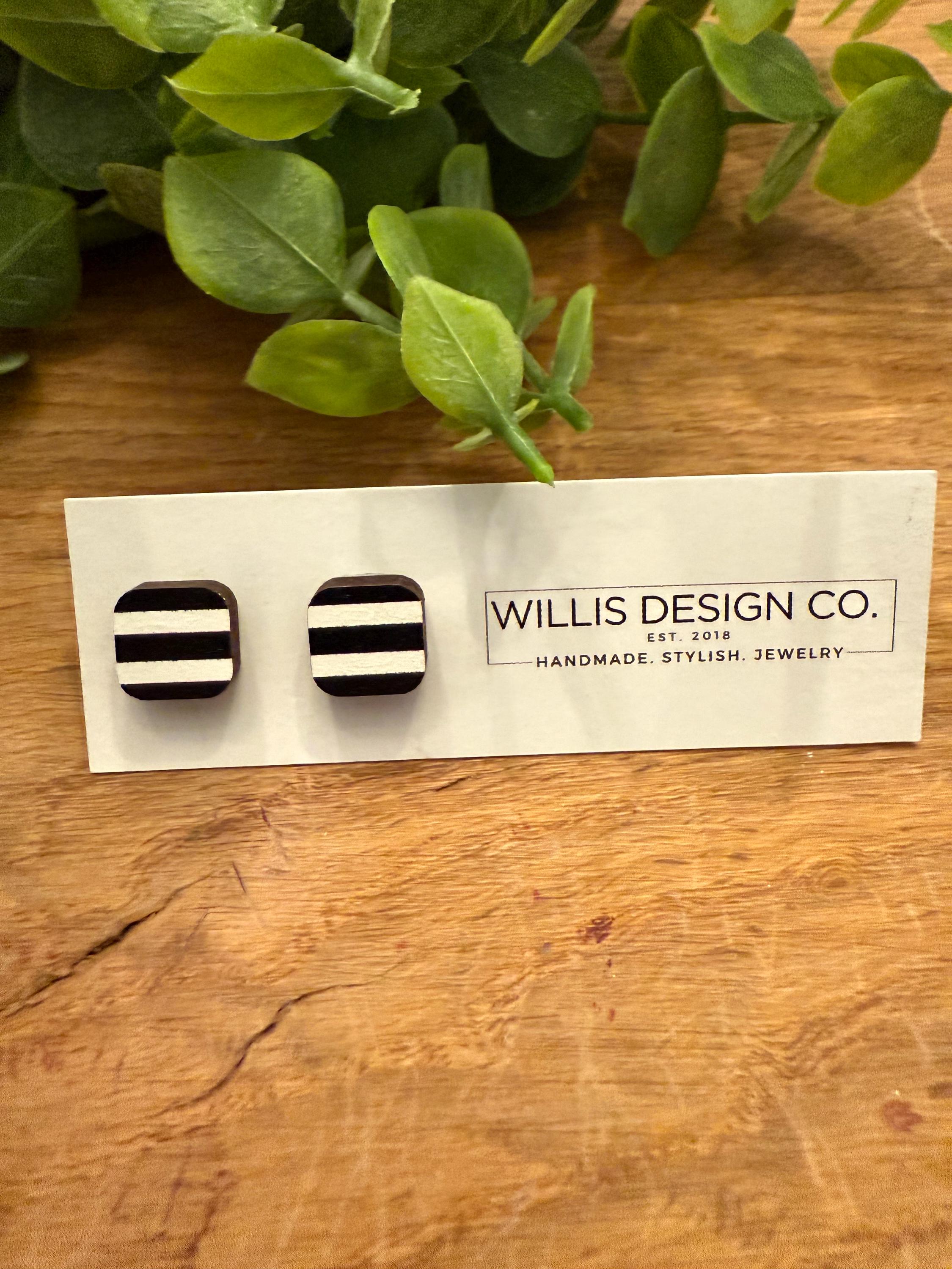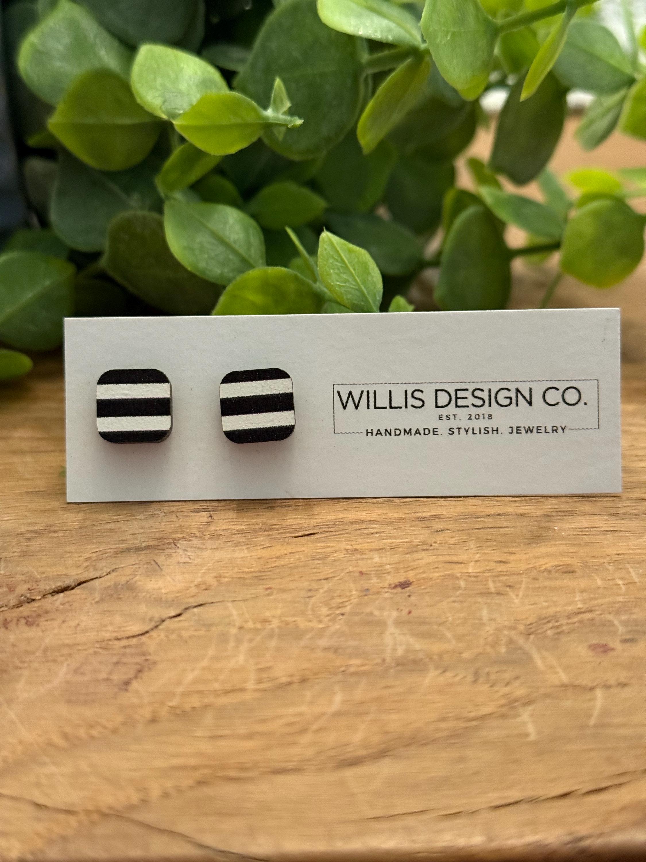 black and white striped wooden stud earrings