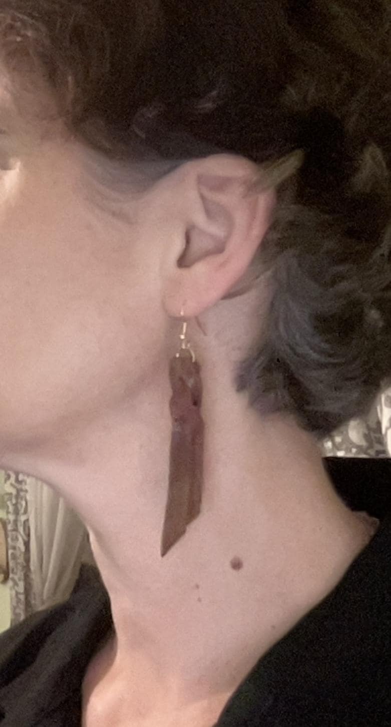 All earrings are handcrafted with high quality genuine leather and or wood unless otherwise noted. I use surgical stainless steel nickel free fishook ear wires.